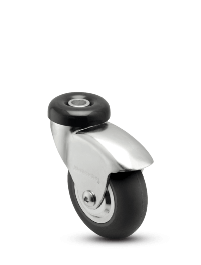 MedCaster NeoTeq Comfort Roll 2-inch caster with hollow kingpin fitting. This swivel caster offers precision bearings in wheel to provide quiet and easy rolling. Ideal for light duty medical applications like laundry hampers, IV stands, bassinets, lap equipment, and O.R. tables.