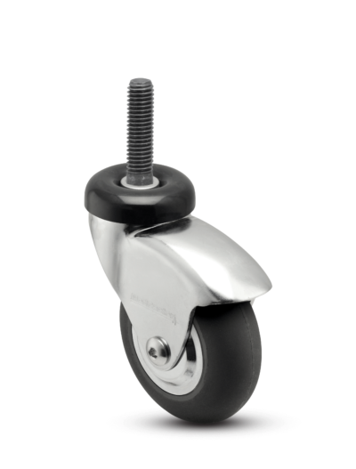 MedCaster NeoTeq Comfort Roll 2.5-inch caster with threaded stem fitting. This swivel caster offers precision bearings in wheel to provide quiet and easy rolling. Ideal for light duty medical applications like laundry hampers, IV stands, bassinets, lap equipment, and O.R. tables.