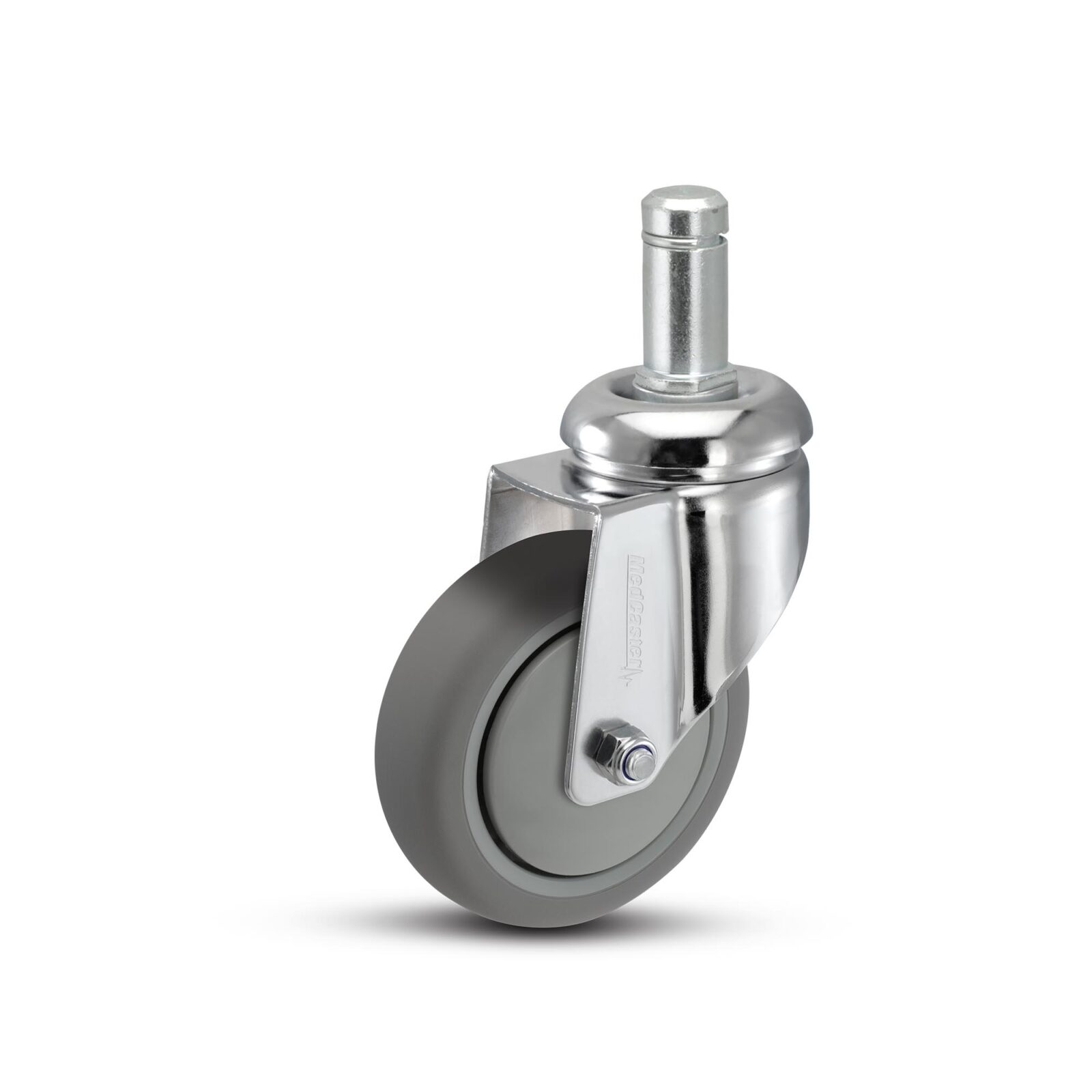 MedCaster Chrome Hospital (FX) 100mm x 32mm grip ring stem rigid caster with premium electropolished chrome for medical applications. Rolls easily and quietly. Made with Injection Molded Polyurethane.