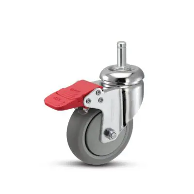 MedCaster Chrome Hospital (FX) 100mm x 32mm grip ring stem swivel caster with total lock has premium electropolished chrome for medical applications. Rolls easily and quietly. Made with Injection Molded Polyurethane. Choose from various grip ring fittings options before requesting your quote.