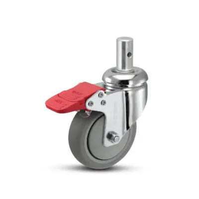 MedCaster Chrome Hospital (FX) 100mm x 32mm round stem swivel caster with total lock has premium electropolished chrome for medical applications. Rolls easily and quietly. Made with Injection Molded Polyurethane. Choose from various round stem fittings options before requesting your quote.