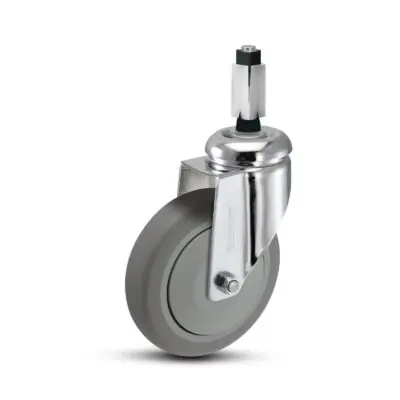MedCaster Chrome Hospital (FX) 125mm x 32mm square nylon expanding adapter rigid caster with premium electropolished chrome for medical applications. Rolls easily and quietly. Made with Injection Molded Polyurethane.