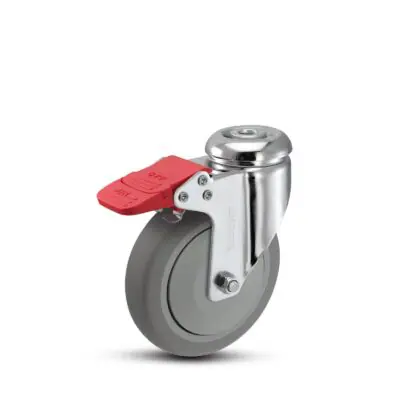 MedCaster Chrome Hospital (FX) 125mm x 32mm total lock swivel caster with premium electropolished chrome for medical applications. Rolls easily and quietly. Made with Injection Molded Polyurethane. Choose from various hollow kingpin fittings options before requesting your quote.