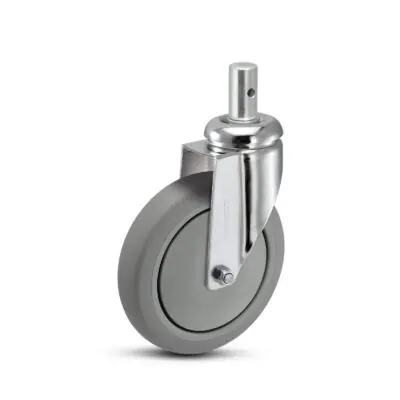 MedCaster Chrome Hospital (FX) 150mm x 32mm round stem rigid caster with premium electropolished chrome for medical applications. Rolls easily and quietly. Made with Injection Molded Polyurethane.