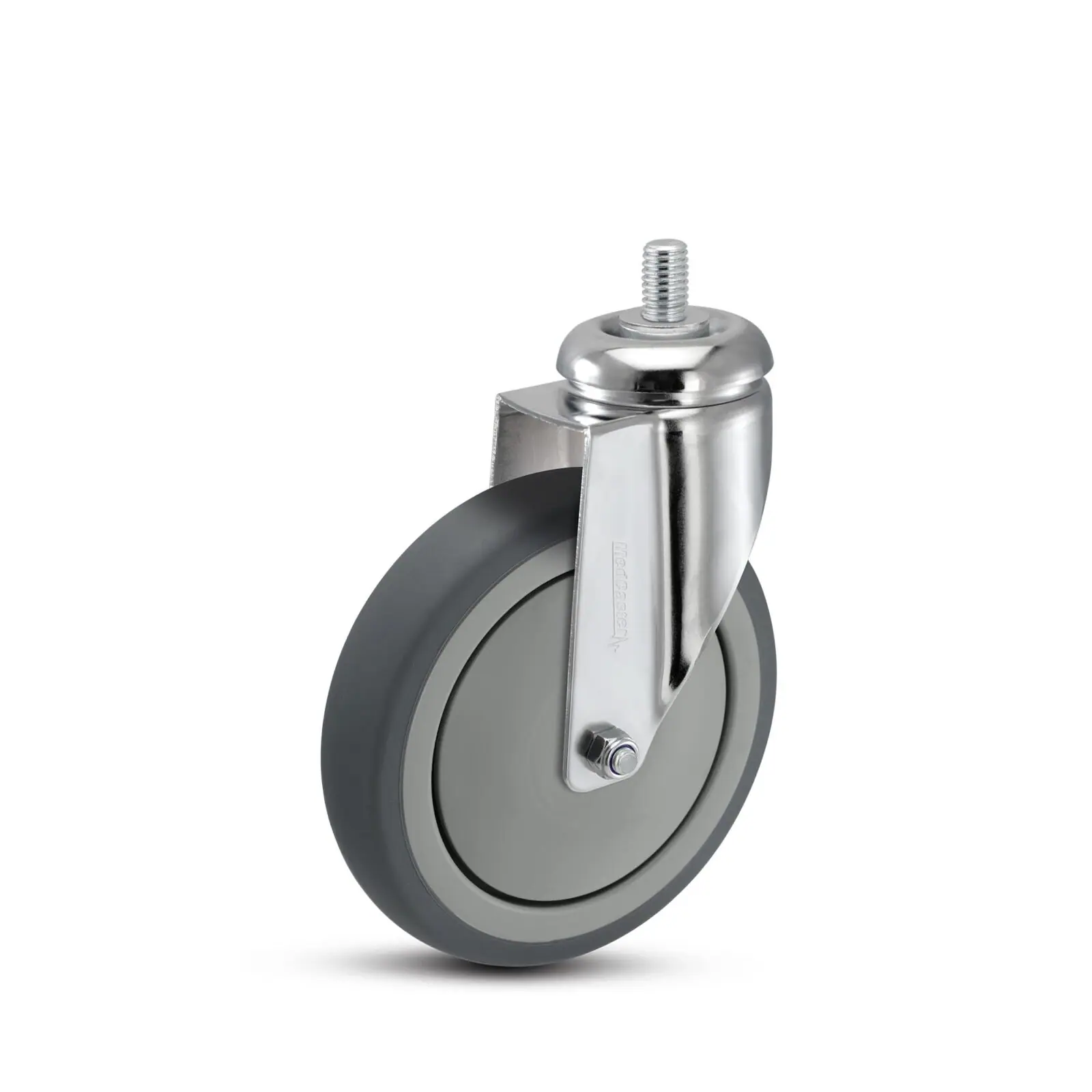 MedCaster Chrome Hospital (FX) 150mm x 32mm threaded swivel caster with premium electropolished chrome for medical applications. Rolls easily and quietly. Made with Thermoplastic Rubber. Choose from various threaded stem fittings before requesting your quote.