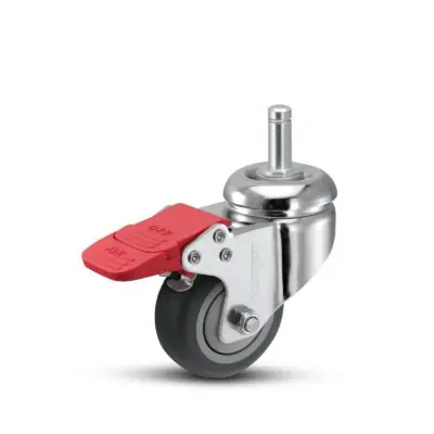 MedCaster Chrome Hospital (FX) 75mm x 32mm grip ring stem swivel caster with total lock has premium electropolished chrome for medical applications. Rolls easily and quietly. Made with Conductive Thermoplastic Rubber. Choose from various grip ring fittings options before requesting your quote.
