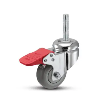 MedCaster Chrome Hospital (FX) 75mm x 32mm threaded stem swivel caster with total lock has premium electropolished chrome for medical applications. Rolls easily and quietly. Made with Injection Molded Polyurethane. Choose from various threaded stem fittings options before requesting your quote.